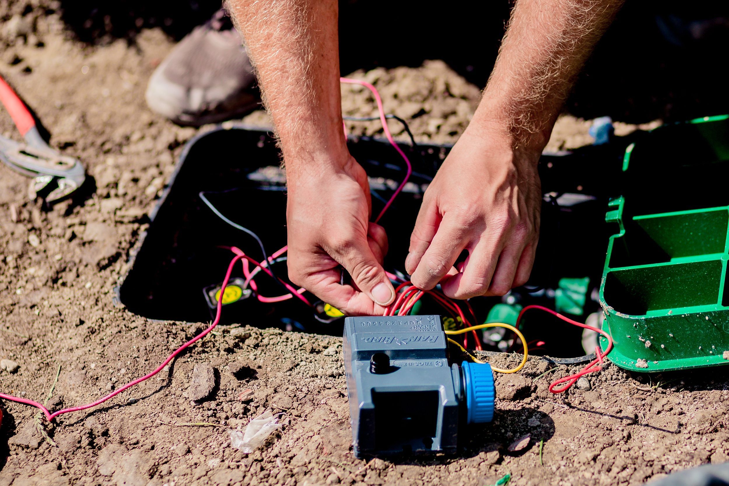 Die Ventilbox wird im Rasen eingebaut – Inbetriebnahme Ihrer Gartenbewässerung und Einschulung.