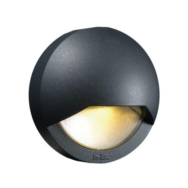 Wandarmatur in dunkelgrau beschichtetem Aluminium. BLINK DARK wird mit zwei Linsen geliefert: transparent und matt. Damit kann leicht eine gezielte oder gestreutere Beleuchtung mit warmweißem Licht erzeugt werden.