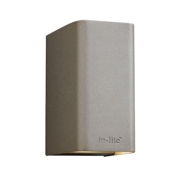 Vierkant-Wandleuchte aus Aluminium in einem warmen Silberton. Erzeugt ein indirekt gebündeltes, warmweißes Licht. Perfekt zum Beleuchten von Zäunen, Zufahrten oder Terrassen.